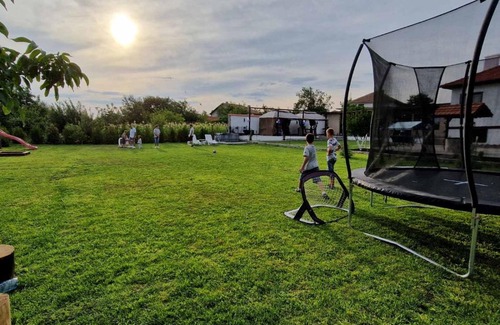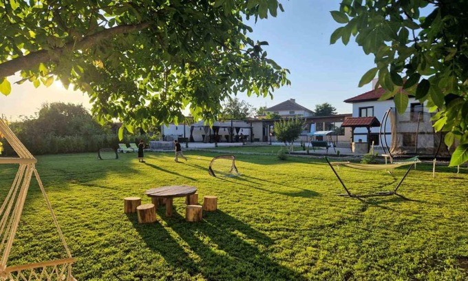 Featuring a shared lounge, Къща за гости Вила Победа provides accommodations in Pobeda. This property offers access to a balcony, free private parking, and free Wifi. The villa has a children's playground and a hot tub. Providing a terrace and garden views, the villa includes 5 bedrooms, a living room, cable flat-screen TV, an equipped kitchen, and 2 bathrooms with a hot tub and a shower. Towels and bed linen are provided in the villa. The property offers inner courtyard views. Guests at the villa can enjoy hiking nearby, or make the most of the garden. Burgas Airport is 68 miles away.