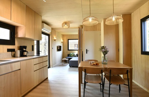 Designed and custom-made in wood in 2025 with quality materials, it can accommodate up to 5 people, including a maximum of 3 adults, this accommodation offers a warm and friendly setting ideal for families seeking relaxation.
