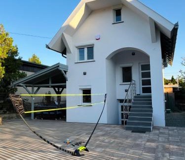Őzike Vendégház - Tiszakécske is a recently renovated vacation home in Tiszakécske where guests can make the most of the garden and barbecue facilities. The vacation home also features free Wifi and free private parking. Featuring a terrace with garden views, this vacation home also comes with a flat-screen TV, a well-equipped kitchen with a dishwasher, an oven, and a microwave, as well as 2 bathrooms with a shower and a hair dryer. For added privacy, the accommodation features a private entrance.