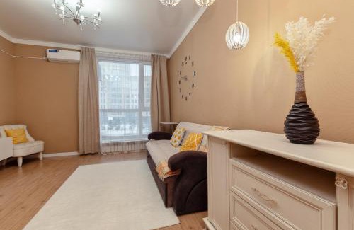 Абрикосовое парфе is a recently renovated apartment in Astana, near Expo 2017 Astana. Among the facilities at this property are a 24-hour front desk and an elevator, along with free Wifi throughout the property. The accommodation offers airport transfers, while a bicycle rental service is also available. The air-conditioned apartment consists of 1 bedroom, a living room, a fully equipped kitchen with an oven and a kettle, and 1 bathroom with a bath and bathrobes. Towels and bed linen are offered in the apartment. This apartment is allergy-free and non-smoking. There is a coffee shop, and a mini-market is also available. For guests with children, the apartment features outdoor play equipment. A car rental service is available at Абрикосовое парфе, while cycling and walking tours can be enjoyed nearby. Bayterek Monument is 3 miles from the accommodation, while Alau Ice Palace is 2 miles from the property. Nursultan Nazarbayev International Airport is 5.6 miles away.