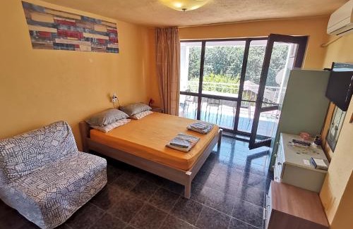 Providing a garden, Вила Фани Синеморец offers accommodations in Sinemorets. With garden views, this accommodation provides a patio. The rooms are equipped with a balcony with mountain views and free Wifi. Featuring a terrace, the units offer air conditioning and have a flat-screen TV and a private bathroom with shower and free toiletries. All rooms are fitted with a kettle, while selected rooms have a fully equipped kitchen with an oven, a stovetop, and kitchenware. At the guest house, all units are fitted with bed linen and towels. Veleka Beach is a 9-minute walk from the guest house, while Municipality Tsarevo is 13 miles from the property. Burgas Airport is 58 miles away, and the property offers a paid airport shuttle service.