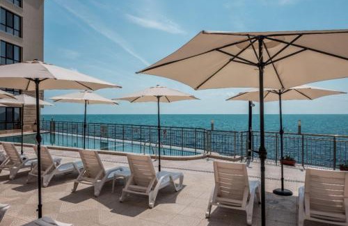 Offering pool views, Кабакум Плаза апартаменти - Cabacum Plaza apartments in Varna City offers accommodations, a private beach area, and a seasonal outdoor swimming pool. This beachfront property offers access to a balcony and free Wifi. Outdoor seating is also available at the apartment. Кабакум Плаза апартаменти - Cabacum Plaza apartments provides guests with a terrace, sea views, a seating area, cable flat-screen TV, a fully equipped kitchen with an oven and a microwave, and a private bathroom with shower. A toaster, a fridge, and stovetop are also offered, as well as a coffee machine and a kettle. At the apartment complex, the units include bed linen and towels. Guests at the accommodation will be able to enjoy activities in and around Varna City, like hiking and walking tours. Cabacum Beach is a few steps from Кабакум Плаза апартаменти - Cabacum Plaza apartments, while Aquapolis Golden Sands is 2.3 miles away. Varna Airport is 12 miles from the property, and the property offers a paid airport shuttle service.