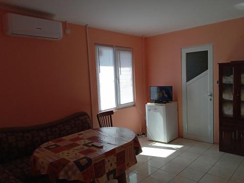 Featuring a garden, Къща бунгало Градината features accommodations in Krapets. The air-conditioned accommodation is 1.7 miles from Krapets Beach, and guests can benefit from on-site private parking and complimentary Wifi. The accommodation provides a shared kitchen and private check-in and check-out for guests. Providing a terrace and garden views, the vacation home includes 2 bedrooms, a living room, satellite flat-screen TV, an equipped kitchenette, and 1 bathroom with a shower. Towels and bed linen are featured in the vacation home. The property has an outdoor dining area. Guests can also relax in the shared lounge area. Thracian Cliffs Golf & Beach Resort is 27 miles from the vacation home, while BlackSeaRama Golf Club is 28 miles away.
