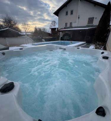 ActivitiesHot tubKitchenWashing machine, Kitchenware, Kitchenette, KitchenOutdoorsBalcony, Private pool, TerraceBathroomPrivate bathroomGeneralHeating, Trash cansMedia & TechnologyFlat-screen TVViewGarden view, ViewRoom AmenitiesFold-up bed, Drying rack for clothing, Clothes rack, Sofa bedBedroomChildrens' cribs |