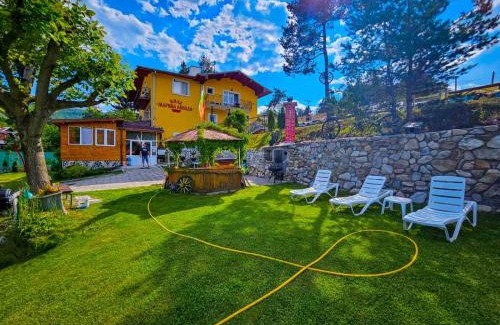 Offering inner courtyard views, Къща за гости "Марина ливада" in Velingrad provides accommodations, a garden, a bar, barbecue facilities, and a shared lounge. There's a private entrance at the guest house for the convenience of those who stay. There's a sun terrace and guests can make use of free Wifi, free private parking, and an electric vehicle charging station. The guest house provides guests with a patio, city views, a seating area, satellite flat-screen TV, a fully equipped kitchen with an oven and a microwave, and a private bathroom with shower and free toiletries. A toaster, a fridge, and stovetop are also offered, as well as a coffee machine. At the guest house, units are equipped with bed linen and towels. For guests with children, Къща за гости "Марина ливада" offers an indoor play area, outdoor play equipment, and a baby safety gate. The guest house also features outdoor fireplace and a picnic area for a day outdoors. Velingrad Historical Museum is 2.2 miles from the accommodation, while Park Kleptuza is 3.3 miles from the property. Plovdiv International Airport is 68 miles away.