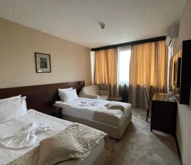 Хотел Ботевград in Botevgrad has a restaurant and a bar. Featuring a garden, the 3-star hotel has air-conditioned rooms with free WiFi, each with a private bathroom. Private parking is available on site. At the hotel, rooms have a desk. The rooms in Хотел Ботевград are equipped with a flat-screen TV and free toiletries. The breakfast offers à la carte, continental or American options. Round-the-clock advice is available at the reception, where staff speak Bulgarian and English. Sofia Airport is 32 miles from the property.
