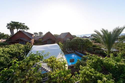 Does the בקתות בצל הגפן have a swimming pool?