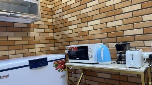 This property offers access to a terrace and free private parking. The chalet features a rooftop pool with a pool bar, as well as a hot tub and a 24-hour front desk. With free Wifi, this 2-bedroom chalet offers a satellite flat-screen TV, a washing machine, and a fully equipped kitchen with an oven and microwave. Featuring air conditioning, this unit has a dressing room and a fireplace. The chalet offers bed linen, towels, and laundry service. A mini-market is available at the chalet. For guests with children, استراحه فندقيه فخمه نطاق المدينه بخصم ترويجي provides kids pool and outdoor play equipment. The chalet also has outdoor fireplace and a picnic area for a day outdoors. The nearest airport is Muscat International, 43 miles from the chalet, and the property offers a paid airport shuttle service.