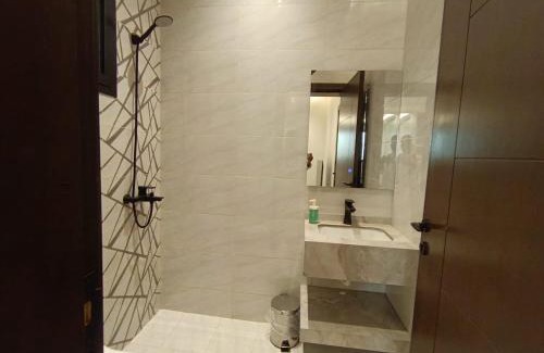 شقة مودرن بحي النزهة بجدة offers accommodations in Jeddah, 2 miles from Mall of Arabia and 7 miles from Red Sea Mall. This apartment offers free private parking, an elevator, and free Wifi. Al Shallal Theme Park is 9.5 miles from the apartment and Al Andalus Mall is 10 miles away. The air-conditioned apartment consists of 1 bedroom, a living room, a fully equipped kitchen with an oven and a coffee machine, and 2 bathrooms with a walk-in shower and slippers. A flat-screen TV with streaming services is offered. The accommodation is non-smoking. There is an on-site bar. Jeddah Mall is 7.3 miles from the apartment, while Floating Mosque is 8.8 miles from the property. King Abdulaziz International Airport is 4.3 miles away.