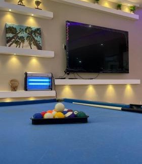 Featuring a garden, فيلا السعادة بشاطي خاص درة العروس offers accommodations in Durat Alarous. This beachfront property offers access to a terrace and free private parking. The chalet features a pool with sea views, indoor pool, and full-day security. This air-conditioned 7-bedroom chalet comes with a fully equipped kitchen, a seating area, a dining area, and a flat-screen TV. The unit at the property features a bidet and a dressing room. For added privacy, the accommodation has a private entrance and soundproofing. During warmer months, you can make use of the barbecue facilities and eat on the private balcony. You can play billiards and tennis at the chalet, and car rental is available. Cycling and hiking can be enjoyed nearby, while a bicycle rental service, a private beach area and water sports facilities, are also available on-site. Alhalmah Village Beach is 1.2 miles from فيلا السعادة بشاطي خاص درة العروس, while King Abdullah Sports City is 27 miles from the property. King Abdulaziz International Airport is 37 miles away.