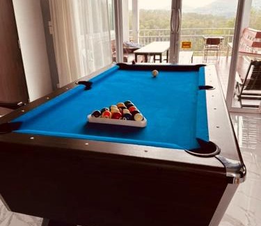 Featuring barbecue facilities, บ้านบนภู ปากช่อง พลูวิลล่า provides accommodations in Ban Lam Thong Lang. This property offers access to a balcony, pool at the pool table, free private parking, and free Wifi. The pool features a fence and garden views. Providing a terrace and mountain views, the spacious villa includes 3 bedrooms, a living room, flat-screen TV, an equipped kitchen, and 3 bathrooms with an a bath or shower. Guests can enjoy a meal on an outdoor dining area while overlooking the quiet street views. A water park and an indoor play area are available at the villa, while guests can also relax in the garden. Thong Somboon Club is 7.6 miles from บ้านบนภู ปากช่อง พลูวิลล่า, while Wat Thep Phithak Punnaram is 13 miles away. The nearest airport is Don Mueang International Airport, 91 miles from the accommodation.