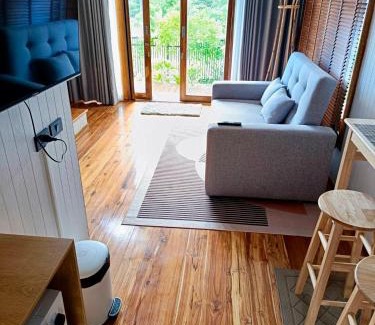 Food & DrinkTea/Coffee makerBathroomShower, Toilet, Hairdryer, Towels, Private Bathroom, Free toiletries, Toilet paperGeneralAir conditioningOutdoorsBalcony, TerraceKitchenKitchenware, Electric kettle, Dining table, RefrigeratorMedia & TechnologyFlat-screen TVViewMountain view, ViewLiving AreaDining areaBedroomWardrobe or closet, Linens |