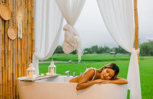 Food & DrinkTea/Coffee maker, Bottle of water, Chocolate/CookiesBathroomPrivate bathroom, Towels, Shower cap, Bathtub, Toilet, Shower, Slippers, Hairdryer, Conditioner, Bathrobe, Toilet paper, Shampoo, Toothbrush, Body soap, Free toiletriesGeneralFan, Private entrance, Air conditioning, Trash cansActivitiesHot tubKitchenDining table, Electric kettle, RefrigeratorLiving AreaDining area, Sitting areaViewMountain view, ViewOutdoorsOutdoor furniture, Outdoor dining area, TerraceRoom AmenitiesSocket near the bed, Clothes rackCleanliness & disinfectionHand sanitizer |