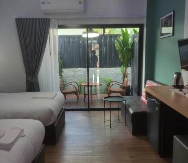 BathroomHairdryer, Private bathroom, Free toiletries, Conditioner, Body soap, Toilet paper, Toilet, Towels, Shampoo, ShowerMedia & TechnologyTV, Flat-screen TVGeneralTrash cans, Air conditioning, Key access, FanOutdoorsPatio, BalconyKitchenRefrigerator, Electric kettleLiving AreaSofa, DeskBedroomLinensAccessibilityEntire unit located on ground floor, Upper floors accessible by stairs onlyRoom AmenitiesClothes rack, Drying rack for clothing, Socket near the bed, Non-feather pillowFood & DrinkBottle of waterPhysical distancingSingle-room AC for guest accommodationCleanliness & disinfectionHand sanitizer |