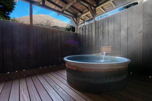 BathroomShampoo, Hairdryer, Toothbrush, Private bathroom, Conditioner, Slippers, Bathtub, Body soap, Bidet, Bathtub or shower, Free toiletries, Toilet, Toilet paper, Shower, TowelsGeneralTrash cans, Air conditioning, Heating, Fire extinguisher, Smoke AlarmActivitiesHot tubOutdoorsOutdoor furniture, Outdoor dining area, Balcony, BarbecueKitchenCleaning products, Kitchen, Dryer, Toaster, Refrigerator, Coffee machine, Washing machine, Microwave, Stovetop, Oven, Dishwasher, Wine glasses, Kitchenware, Dining tableLiving AreaDining area, SofaViewGarden view, Quiet street view, Mountain viewBedroomLinensBuilding CharacteristicsDetachedRoom AmenitiesTatami (traditional Japanese flooring), Feather pillow, Socket near the bedMedia & TechnologyStreaming service (like Netflix), Mobile hotspot deviceHot SpringOpen-air bathCleanliness & disinfectionHand sanitizer |