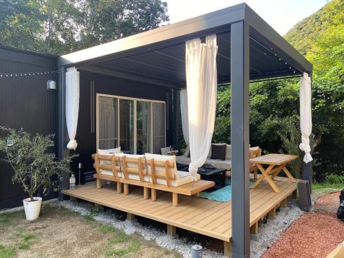Offering a garden, リバーサイドロッジ offers accommodations in Futtsu. This property offers access to a patio, free private parking, and free Wifi. The luxury tent has a terrace and a hot tub. The luxury tent also features a well-equipped kitchen with an oven, a microwave, and a fridge, as well as slippers. The accommodation offers an air conditioning, a heating, and a private bathroom. Tokyo Haneda Airport is 33 miles from the property.