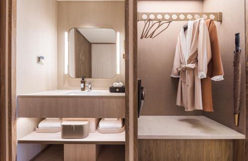 BathroomBathrobe, Toilet paper, Toilet, Hairdryer, Shower cap, Guest bathroom, Towels, Private bathroom, Shampoo, Free toiletries, Toothbrush, Bathtub or shower, Shower, SlippersMedia & TechnologyFlat-screen TV, TV, Cable channels, TelephoneGeneralFire extinguisher, Air conditioning, Smoke Alarm, Key card access, Trash cansLiving AreaDesk, SofaServicesWake-up serviceKitchenElectric kettleBedroomLinens, Wardrobe or closetRoom AmenitiesClothes rack, Socket near the bedCleanliness & disinfectionHand sanitizer |
