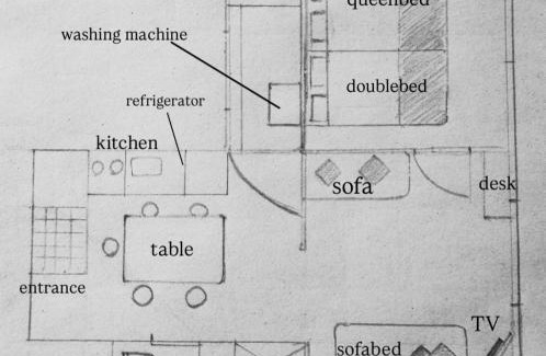 GeneralTrash cans, Air conditioningBathroomBody soap, Toilet paper, Private bathroom, Slippers, Shampoo, Conditioner, HairdryerLiving AreaDesk, SofaKitchenKitchen, Washing machineMedia & TechnologyFlat-screen TVRoom AmenitiesDrying rack for clothing, Sofa bed, Socket near the bed, Non-feather pillow |