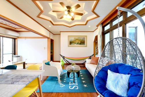 広い庭付きBBQ可, 残波ビーチまで車で5分, 最大人数11名 Ns garden is located in Jima, just 1.2 miles from Zakimi Gusuku Castle and 2.9 miles from Maeda Cape. This property offers access to a balcony, free private parking, and free Wifi. Onna-son Community Center is 11 miles away and Nakagusuku Castle is 14 miles from the vacation home. The air-conditioned vacation home consists of 4 bedrooms, a living room, a fully equipped kitchen with a microwave and a coffee machine, and 1 bathroom with a bidet and slippers. Guests can enjoy a meal on an outdoor dining area while overlooking the sea views. The accommodation is non-smoking. Outdoor play equipment is also available at the vacation home, while guests can also relax in the garden. Popular points of interest near 広い庭付きBBQ可, 残波ビーチまで車で5分, 最大人数11名 Ns garden include Nagahama Beach, Ukachi Park Beach, and Yokuta Beach. Naha Airport is 21 miles away.
