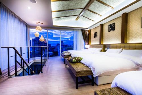 晟品溫泉湯旅 宜蘭縣058號 enjoys a location in Jiaoxi, 26 miles from Raohe Street Night Market and 26 miles from Taipei 101. The property is around a 12-minute walk from Jiaoxi Railway Station, 12 miles from Luodong Train Station, and 25 miles from Wufenpu Garment Wholesale Area. The accommodation offers a hot spring bath, free Wifi throughout the property, and family rooms. Accommodation is equipped with air conditioning, a fully equipped kitchenette with a dining area, a flat-screen TV, and a private bathroom with bath, slippers, and a hair dryer. An oven, a microwave, and fridge are also offered, as well as a coffee machine. At the apartment complex, units come with bed linen and towels. Guests can also relax on the sun terrace. Tonghua Street Night Market is 27 miles from the apartment, while Daan Park is 27 miles from the property. Taipei Songshan Airport is 27 miles away.