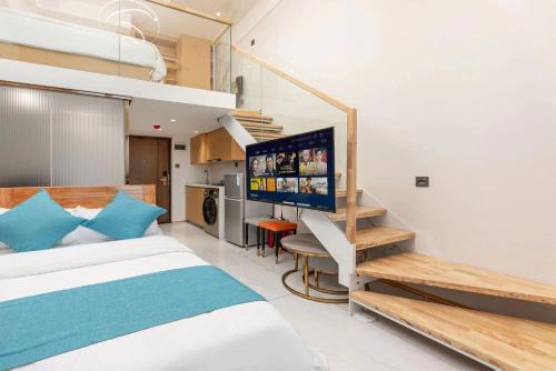 Offering air-conditioned rooms in the Luohu District district of Shenzhen, 深圳华尔曼欢朋酒店公寓 罗湖水贝珠 宝城店 is 3.7 miles from Shenzhen Stadium. The property is around 4.7 miles from Shenzhen Railway Station Luohu, 6.9 miles from Shenzhen Civic Center, and 7.1 miles from Civic Center Station. Free Wifi, a 24-hour front desk, and an elevator are featured. At the condo hotel, each unit comes with a wardrobe, a flat-screen TV, a private bathroom, bed linen, and towels. A fridge and kettle are also provided. The rooms are equipped with heating facilities. Shenzhen Convention & Exhibition Centre is 7.8 miles from the condo hotel, while Shenzhen North Railway Station is 10 miles away. Shenzhen Bao'an International Airport is 26 miles from the property.