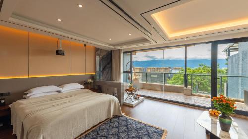 Featuring lake views, 铂诩海景客栈 BOXU Seaview Resort Villa in Dali features accommodations and a garden. Among the facilities at this property are free shuttle service and room service, along with free Wifi throughout the property. Each room has a balcony with views of the sea. Featuring a terrace, the units offer air conditioning and have a flat-screen TV and a private bathroom with bidet and slippers. A patio with mountain views is offered in every unit. At the bed and breakfast, each unit has bed linen and towels. A buffet breakfast is available at the bed and breakfast. There is a coffee shop, bar, and lounge. You can play billiards and darts at 铂诩海景客栈 BOXU Seaview Resort Villa, and the area is popular for hiking and walking tours. An indoor play area is also available for guests at the accommodation. Dali Railway Station is a few steps from 铂诩海景客栈 BOXU Seaview Resort Villa, while Monument of Shih-tsu Taking over Yunnan is 1.1 miles away. Dali Fengyi Airport is 8.7 miles from the property, and the property offers a paid airport shuttle service.