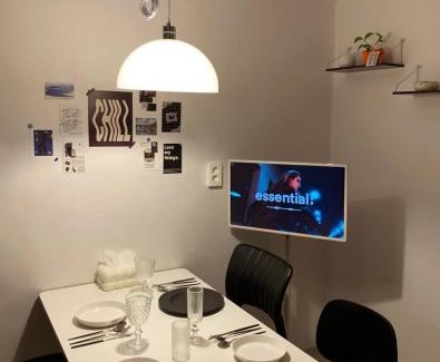 BathroomToilet paper, Shampoo, Body soap, Slippers, Conditioner, Toilet, Hairdryer, Private bathroom, Bathtub or shower, Towels, ShowerMedia & TechnologyTV, Flat-screen TV, Streaming service (like Netflix)GeneralAir conditioning, Carbon monoxide detector, Fire extinguisher, Soundproof, Heating, Smoke Alarm, Trash cansKitchenRefrigerator, Washing machine, Microwave, Kitchen, Kitchenware, Dining table, Wine glasses, Electric kettle, Cleaning productsLiving AreaDining area, Sitting areaBuilding CharacteristicsSemi-detachedRoom AmenitiesSocket near the bed, Clothes rack, Drying rack for clothing, Non-feather pillowPhysical distancingSingle-room AC for guest accommodation |