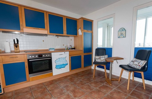 The apartment has a spacious, bright living room, very tastefully furnished, with flat screen TV, CD and DVD player, a charming dining area with integrated, high quality equipped kitchen (dishwasher, oven, microwave, coffee maker, Tassimo, kettle, etc.) and a large south-facing balcony with a comfortable seating set to linger between the waters. Also board games and various books at leisure, this apartment for you. In the basement you expect two beautifully decorated bedrooms with double or Bunk bed and a bathroom (toilet and bathtub with shower facilities), which will make your stay in this apartment to a special holiday experience - sleeping with sea view! The double bed (two single mattresses 90x200cm) was purchased in 2016 and is equipped with a motor frame, which easily adjusts the height of the head and foot with a remote control. The bunk bed has two mattresses measuring 90 x 200cm.