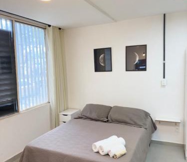 09 Apartamento com Ar Condicionado, cozinha, vaga, Life Center, SmartFit ao lado offers accommodations in Belo Horizonte, 1.3 miles from Municipal Park and 1.3 miles from Francisco Nunes Theather. The property is around 2.5 miles from Belo Horizonte Bus Station, 7.4 miles from Mineirão Stadium, and 7.7 miles from São Francisco de Assis Church. The apartment offers free Wifi and free private parking. The air-conditioned apartment is composed of 1 separate bedroom, a fully equipped kitchen, and 1 bathroom. Towels and bed linen are offered in the apartment. The accommodation is non-smoking. Belo Horizonte Art Palace is 1.3 miles from the apartment, while Casa Fiat de Cultura is 1.2 miles from the property. Tancredo Neves International Airport is 26 miles away.