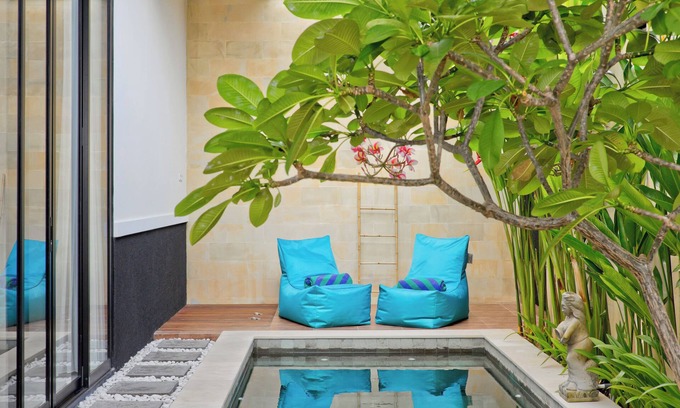 Our one-bedroom pool villa offers utmost privacy, nestled in tranquil surroundings yet conveniently close to the vibrant offerings of Seminyak and Legian. Relax in the spacious bedroom featuring a luxurious king-size bed and a well-appointed en-suite bathroom.