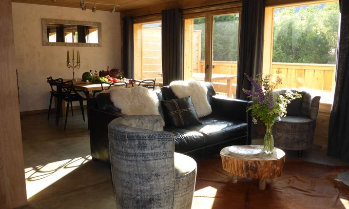 Chalet Flocons is a half-chalet of 135 m2 located in a quiet environment, near the center of Chamonix. 2 to 8 people