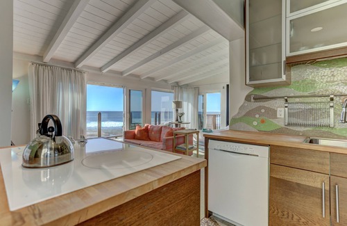 You'll be amazed as you walk into this gorgeous little jewel on the beach in La Jolla! Enjoy 180 degrees of unobstructed oceanfront panoramic views of this stunning coastline. Relax on your own private extra large balcony overhanging the beach and rolling waves. Watch as the dolphins surf the waves, the pelicans fly elegantly by and the seals entertain you. Step down to the beach for a little stroll, explore the tide pools or a plunge into the beautiful clear waters. No need to pack anything for your beach excursion, it's all at your fingertips at this private little slice of heaven!