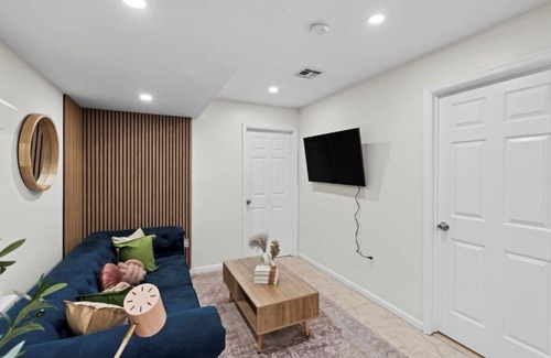 Discover this 1-bedroom gem in Jersey City 3 min walk away from the train station. This spacious and newly renovated apartment is fully furnished with a comfortable brand new mattress, 50 TV, keurig coffee maker, Central AC and Heat, clean and tasteful design throughout the space and washer dryer