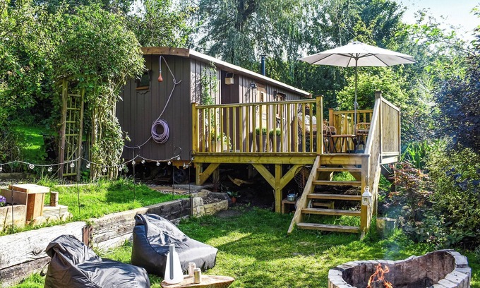Shower Room: Walk-In Shower, Toilet. Electric central heating, electricity, bed linen and towels. Initial logs for wood burner included. . Lawned garden with decking, garden furniture and firepit. Wood-fired tub (private). Outdoor projector, £80. Bike store. Private parking for 1 car. No smoking.. Step back into nature in this incredible shepherd’s hut. Here you have your own hot tub as well as an outdoor projector where you can watch movies beside the crackling fire, for a truly unique break away. Nestled in the glorious North Yorkshire Moors National Park, this is a beautiful area to explore – if you can tempt yourself away from this idyllic base. With off road private parking, step through the gate and follow stone steps down to your own private haven. At the front of the oak clad shepherd’s hut you have a large decked area, with seating to enjoy al fresco dining or simply to soak up the sunshine. Steps lead down from the decking to a lawned area, with a central fire pit, ideal for cosy nights beneath the stars. The dark skies here; away from light pollution, are incredible for star gazing. Over the fit pit you can BBQ or use the tripod cooker provided. An added unique feature is an outdoor projector screen, giving you the opportunity to have a movie night to remember. The wood-fired hot tub is sure to delight, it’s housed in a bespoke wooden enclosure. Guests can supply their own wood, or purchase this from the owner for £12 per bag with fire starters. Simply sit back in the heated water and relax as you listen to the bird song as well as the babbling stream nearby.