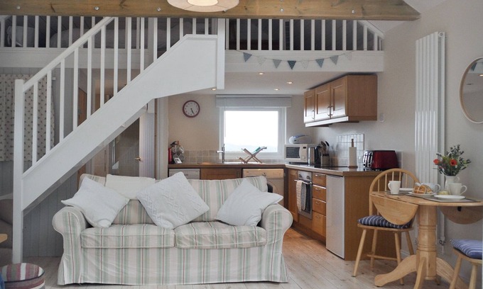 This unique property is set in a quiet area, ideally located to take advantage of the stunning views over the River Teign. . 12 steps to entrance. Ground floor: Living room with double sofa bed (for alternative sleeping)/dining room with wooden floor/kitchen. First floor: Mezzanine with 1 double bed and sloping ceiling (limited headroom, max height 6ft). Shower room with toilet.. Gas central heating, electricity, bed linen, towels and Wi-Fi included. 32" Freeview TV. CD. Electric cooker. Microwave. Washing machine. Dishwasher. Fridge. Use of owner’s freezer. Courtyard with sitting-out area and furniture. Parking for 1 car. 1 small dog welcome, to be kept on a lead. No smoking. Please note: No children under 10 years old.. With amazing views over the river, Teign View Lodge is a cosy, bespoke property, open plan to maximise space and decorated and furnished to a good standard. The bedroom has limited headroom (maximum height 6ft) with sloping ceilings on either side of the bed. This is the perfect spot for walkers, birdwatchers and cyclists, or just to get away from it all. The property is situated in a quiet residential area with a small courtyard area with table and chairs, perfect for al-fresco dining. Bishopsteignton is a large village, on the banks of the Teign Estuary. The River Teign is about 30 miles long from where it rises on Dartmoor, near Cranmere Pool, west of Chagford, and reaching the sea at Teignmouth, on the south Devon coast. There are many coastal and river walks well worth enjoying, as well as Dartmoor which is a short drive away. Teignmouth is about 2 miles away, and can be seen from the lodge. It has a classic crescent of Georgian buildings, promenade, pier and a long sandy beach. It is a real hidden gem on the south Devon coast and is both an historic port and classic seaside holiday resort. With traditional seaside attractions all around, you do not need to venture far to keep everyone entertained. There are two distinct sides to Teignmouth – the sea front and the harbour side. Then take a ferry across to Shaldon which is quieter, and has many cafés, restaurants and a sandy beach. There is a nature reserve at Labrador Bay and also a small zoo in Shaldon. There are many NT properties close by. A trip to Dartmoor is also a great day out, with its tors, ponies, vast expanse of moorland and little hidden villages where a Devon cream tea is all part of the holiday. Beach 2 miles. Shop 400 yards, pub 330 yards and restaurant 500 yards.