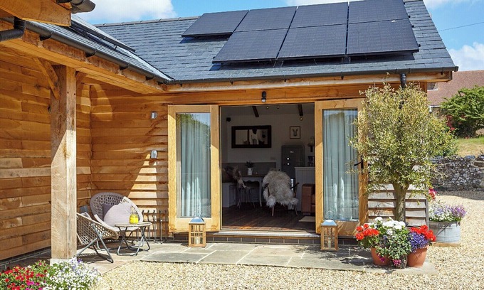 Bedroom: Zip And Link Super Kingsize Bed (2 x Singles On Request), 32" Freeview Smart TV Ensuite: Cubicle Shower, Heated Towel Rail, Toilet. Electric central heating, electricity, bed linen, towels and Wi-Fi included. Welcome pack. Store room with washer/dryer on request. Small front patio with garden furniture. Electric car charging point (at cost). Private parking for 1 car. No smoking.. This stunning, detached oak barn conversion is set in the grounds of a Grade II listed, English Heritage, 16th-century thatched cottage in the beautiful village of Brightstone. It is beautifully presented and has everything you need for a comfortable and relaxing stay. There is a bright open plan living, dining and kitchen area, and a bedroom which can be configured either as a king or twin beds with en-suite shower room. It also has the added bonus of private parking for one car.