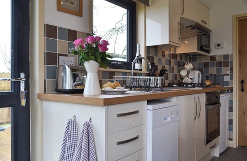 Bedroom: Kingsize (5ft) Bed, Freeview TV Ensuite: Cubicle Shower, Heated Towel Rail, Toilet. Gas central heating, gas, electricity, bed linen and towels included. Initial logs for wood burner included. Travel cot and highchair available on request. Welcome pack. Laundry room with freezer, washing machine and tumble dryer (coin operated, shared with other properties on-site).. Terrace with garden furniture and BBQ. 23-acre natural grounds with woodland (shared with other properties on-site). Hot tub for 2 (private). Bike store (shared with other properties on-site). Private parking for 2 cars. Electric vehicle charging point. No smoking. Please note: There is an unfenced stream in the grounds, 800 yards away.. Osprey Lodge is on the fringe of the northern part of the Lake District National Park and set within a small campsite. This detached lodge looks across open meadows and towards the Solway Coast. The lodge has been presented to a very good standard, with an open plan living space with large comfortable sofa and wood burner, a kitchen area with everything you should need, including a dishwasher, and a choice of whether to dine inside or al fresco on the balcony to take in the views. The double bedroom has a comfortable kingsize bed and an en-suite shower room. Recline in the bubbling waters of the hot tub, unwind in front of the warm fire or lie down on the sumptuous bed, whatever you choose, you will enjoy your stay.