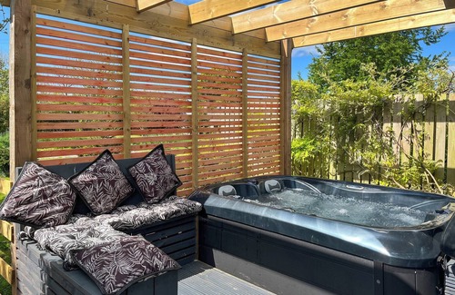 Step inside to find a beautifully appointed open-plan space featuring a luxurious king-size bed, cosy seating area, dining space, and a compact but well-equipped kitchen with everything you need to prepare meals at your leisure. A separate, generously sized shower room adds to the comfort, while the highlight for many guests is the private hot tub — perfect for unwinding under the stars after a day of exploring.