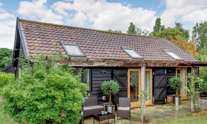 Shower room: With walk-in shower, toilet and heated towel rail.. Electric central heating, electricity, bed linen and towels included. Welcome pack. Enclosed rear garden with sitting-out area. Grounds (shared with other properties on-site). Tennis court (10am-6pm, shared with other properties on-site). Electric car charging point within grounds available at cost. Private parking for 1 car. No smoking. Please note: There are steps in the grounds. . Completely refurbished in 2022 to provide a haven in which to relax and unwind, Hazel Barn stands detached and is peacefully tucked away. It has its own private seating garden to enjoy, as well as shared access to the extensive large lawn grounds with a tennis court (available 10am-6pm). Being an ideal location for exploring both Norfolk and Suffolk, you really are spoilt by having so much to do and see. Be sure to bring your golf clubs as there is a golf course, as well as a leisure spa on your doorstep offering beauty treatments (booking essential). Foodies will delight in the choice of gastro pubs and good restaurants available within walking distance or a short drive.