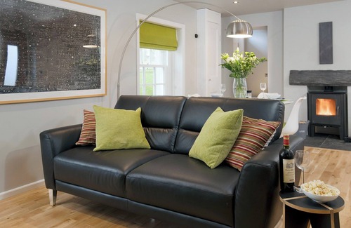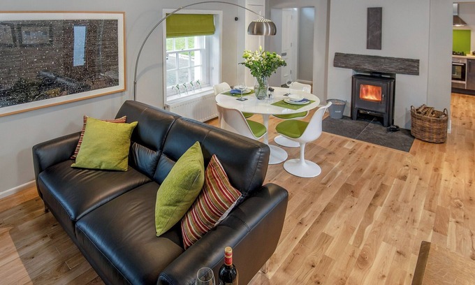 Shower Room: Walk-In Shower, Heated Towel Rail, Toilet. Gas central heating, electricity, bed linen, towels and Wi-Fi included. Initial fuel for multi-fuel burner included. Freezer and tumble dryer on site (shared with other cottages). Welcome pack.. Enclosed courtyard (shared with other cottages). Sitting-out area with garden furniture. Private parking for 2 cars. No smoking. Please note: There is one step in the courtyard.. The perfect getaway for a couple, this large and sumptuous, one-bedroomed, terraced house is decorated using a colour scheme of soft greys and a splash of green, and makes an ideal retreat away from the hustle and bustle of everyday life. Cosy up on the sofa in front of a blazing fire, or sit in the garden and enjoy the night sky. A wonderful ‘home from home’, Granary has it all - and your dog is welcome too!