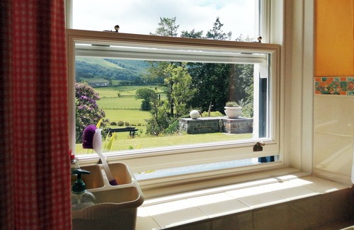 Bathroom: Bath With Shower Over, Toilet. Oil central heating, electricity, bed linen and Wi-Fi included. Utility room with washing machine (shared with owner). 1-acre lawned garden with patio, garden furniture and firepit. Bike store. Private parking for 2 cars. No smoking.. Panoramic valley and hillside views. Lying in the heart of Red Kite Country, the Cambrian Mountaints Dark Skies and the scenery for TV’s ’Hinterland’ series, this elevated, self-contained, wing of the owner’s family house, was once the Goginan silver - lead mine captain’s residence. This property overlooks an acre of delightfully landscaped gardens, full of interesting trees, shrubs, spaces and quirky features. The bird feeder provides a constant source of activity! To the rear lies woodland whilst its elevated aspect looks south across the beautiful Melindwr Valley to the village of Goginan itself. The Melindwr is a tributary of the stunningly scenic Rheidol, famous for one of ’the Great Little Trains of Wales’ that runs from Aberystwyth to Devil’s Bridge. Just below the property, alongside the Melindwr is the pleasant, riverside community seating area, complete with the village book swap shop.