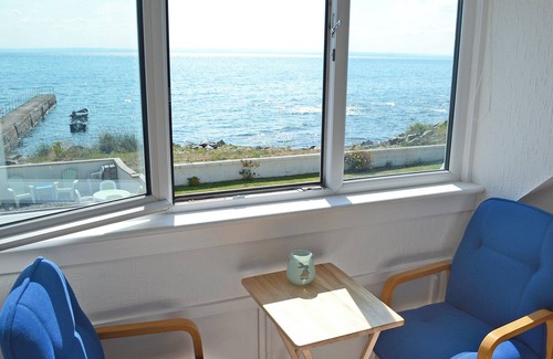 Bedroom: Double (4ft 6in) Bed, 20" Freeview TV. Economy 7 heating, electricity, bed linen, towels and Wi-Fi included. Welcome pack and doggy extras.. Enclosed garden with sitting-out area and garden furniture. Rear patio with garden furniture. Private parking for 2 cars. No smoking. Please note: There are 3 steps in the garden. The garden is accessed across a lane.. Seascape is situated right on the edge of the sea in the pretty hamlet of Hilton. This pretty 19th-century stone terraced property enjoys spectacular, uninterrupted seascape views from the cottage and gardens. Located next door to the owner, it is a truly romantic seaside cottage for two. The attractive open plan living space looks out across the shoreline, where dolphins and porpoises are regularly seen. There is plenty of comfortable seating in the living area, and the bright modern kitchen is very well equipped and complete with a breakfast bar. A door leads out from here to a secluded patio garden with outdoor garden furniture. Cottage stairs lead up to the charming double bedroom where a small table and chairs at the far end look out across the sea, taking maximum advantage of the amazing views. There is a modern shower room on the ground floor. Opposite the cottage, across the tiny backwater lane, there is a delightful terrace garden overlooking the sea. With flower pots, tubs and outdoor garden furniture, it provides an ideal spot to enjoy a drink whilst watching the small craft bobbing on the bay in the tiny harbour.