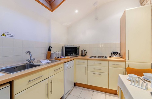 Kitchen: With electric hob, combi microwave/oven/grill, fridge/freezer and dishwasher.
