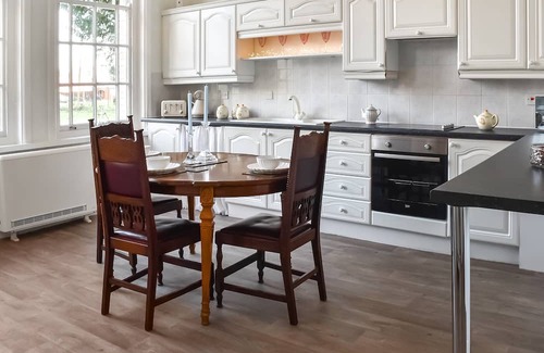 Bathroom 1: Bath With Shower Over Bath, Heated Towel Rail, Toilet. Electric central heating, electricity, bed linen, towels and Wi-Fi included. Initial fuel for open fire included. Welcome pack. Grounds with sitting-out area and garden furniture (shared with other properties on-site). Private parking for 1 car. No smoking. Please note: There is an unfenced lake in the grounds. . The Lake House is a spacious ground floor apartment with big rooms and high ceilings boasting a large emperor bed, open fire to snuggle beside on cooler evenings, its own private entrance, and a wing of Crimplesham Hall, a Grade II listed, and said to be the finest in Norfolk.