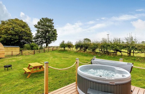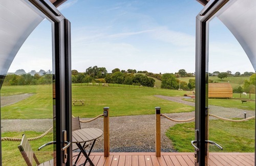 Shower Room: Cubicle Shower, Heated Towel Rail, Toilet. LPG central heating, electricity, bed linen, towels and Wi-Fi included. Welcome pack. . Front garden with sitting out area and garden furniture. Hot tub for 4 (private). Private parking for 1 car. No smoking.. Situated in the stunning Welsh countryside, this group of superior, detached boutique pods have been carefully positioned to provide guests with a peaceful and romantic holiday setting. Each pod has been created with open studio type accommodation, all on one level. This is the perfect place to escape for a romantic break, with a private hot tub provided for guests to enjoy and take in the beautiful surroundings.