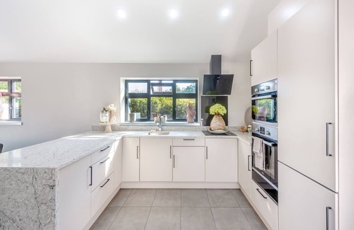 Shower Room: Walk-In Shower, Heated Towel Rail, Toilet. Electric central heating, electricity, bed linen, towels and Wi-Fi included. Initial fuel for wood burner included. Welcome pack. Back garden with patio and garden furniture. Hot tub (private). Sauna (private). Electric car charging point, at cost, prior arrangement with owner. Private parking for 2 cars. No smoking.. Nestled just over a mile from the charming village of Meriden, Lower Peastocking is a beautifully appointed single-storey holiday cottage, perfect for couples seeking a peaceful retreat or professionals attending events at the nearby NEC. This dog-friendly property offers a harmonious blend of modern comfort and rustic charm. The living area and open-plan kitchen is thoughtfully designed, featuring a log burner for cosy evenings, a Smart TV for entertainment, and a breakfast bar for casual dining. Bifold doors open onto a private patio, complete with outdoor seating and a dining area, ideal for al fresco meals, relax in the barrel sauna, The double bedroom provides a restful sanctuary, equipped with its own Smart TV, and the adjoining shower room ensures convenience. There is also a utility room, offering practical space for longer stays.