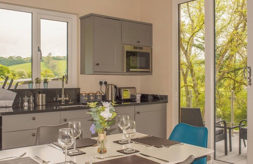 Bathroom: Walk-In Shower, Bath, Toilet. Electricity, gas, bed linen, towels and Wi-Fi included. Cot and highchair.. Garden with balcony, sitting-out area, garden furniture and BBQ. Hot tub (private). Parking for 2 cars. No smoking. Please note: There is a pond in the grounds. This property has a security deposit of £100.. This peaceful countryside cabin offers the best of both worlds. A quiet and relaxing holiday, yet also a location with heaps to do nearby. Newtown is only a few miles away, with tea rooms, bistros and lovely restaurants should you fancy a bite to eat. Kites Nest has lovely views across the countryside, with a woodland sat behind it. Here you can sit on the terrace or in your private hot tub with the sounds of nature all around you.