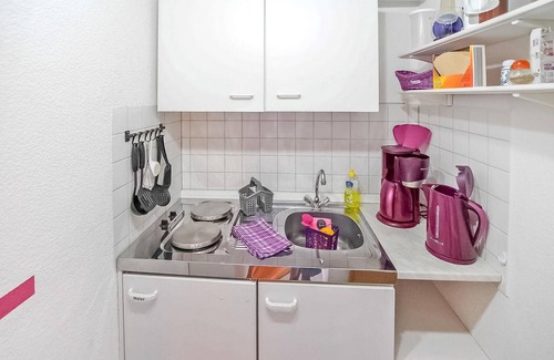 The apartment on the ground floor for two people has a combined living room/bedroom (double bed, sitting area, flat-screen TV, radio), a mini-kitchen (electric hobs, fridge with freezer compartment, coffee machine, toaster, kettle), WiFi and bathroom with shower/WC.