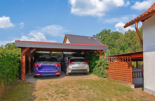 Just a few minutes' walk from the castle park, in a quiet residential area, there are three holiday apartments for 2 or 3 people in a separate holiday home on the owners' fenced residential property of approx. 1,800 square metres. Restaurants, shops and Rheinsberg railway station are within walking distance, while the outdoor pool at Grienericksee is approx. 2 km away. Access to the centrally heated non-smoking flats, each measuring approx. 30 square metres, is via a separate courtyard entrance. The cosy, furnished courtyard with barbecue is available to all guests. There are also two carport parking spaces (also with their own driveway and gate), further parking spaces and bicycle storage facilities. The total price includes final cleaning, bed linen, towels, water and energy consumption. To be paid on site: Tourist tax.