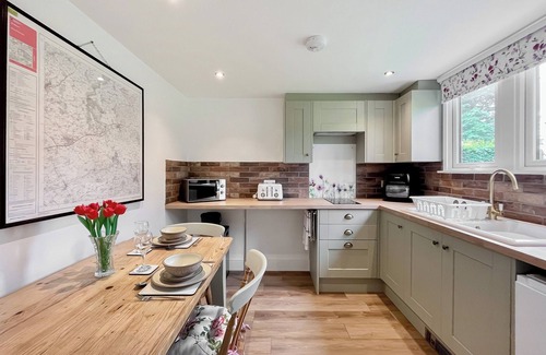 Shower Room: Cubicle Shower, Heated Towel Rail, Toilet. Electric central heating, electricity, bed linen, towels and Wi-Fi included. Initial fuel for wood burner included. Front garden with sitting-out area, garden furniture and barbecue & Pizza oven (Charcoal). 1 small dog welcome. Private parking for 2 cars. No smoking.. This converted outbuilding and woodstore sits on the site of an original orchard in the owners’ gardens of Stroud Cottage, dating back to the early 1800s.